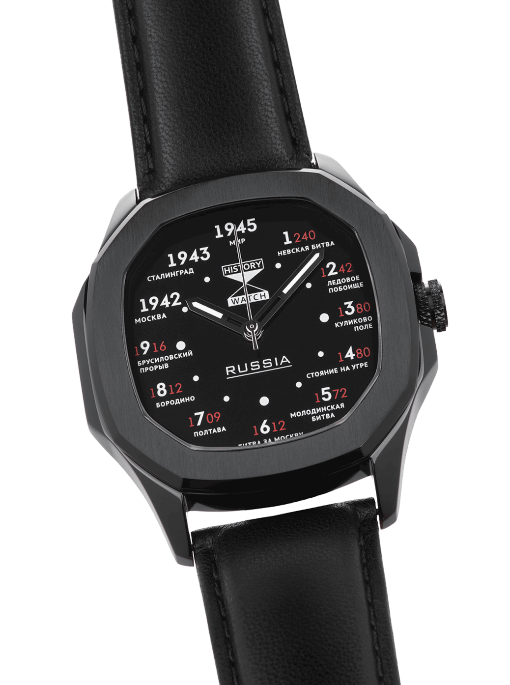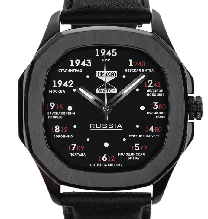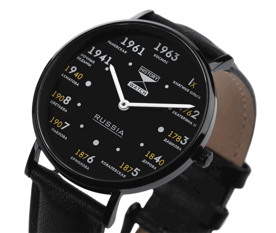 На циферблате часов отражены самые важные события и герои в истории России в иерархическом порядке. По каждому событию можно прочитать яркую историческую справку на нашем сайте.
